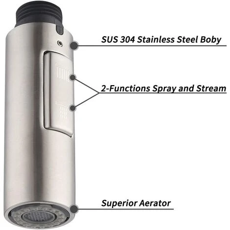 2-FONCTIONS: La tête de pulvérisation de robinet fournit le mode de pulvérisation et le mode de flux, de la chasse d’eau à remplissage, répondant à vos besoins de différentes utilisation.