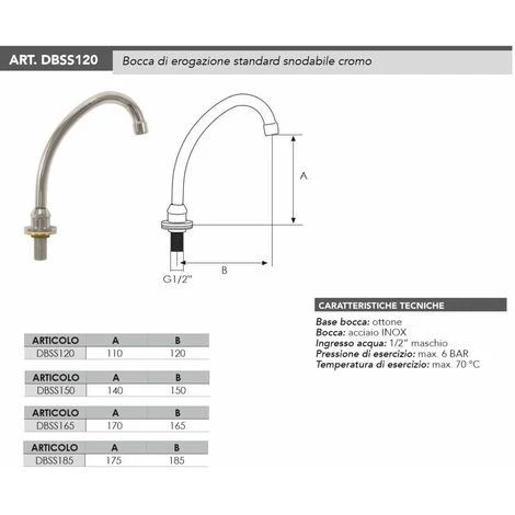 Ce bec est utilisé dans les environnements publics, il se combine avec un mélangeur ou un robinet à pédale, disponible en différentes tailles de 120 à 185 mm entre axes, entièrement en laiton chromé avec connexion standard 1/2 et kit de fixation en surface
