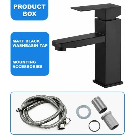 INSTALLATION FACILE ET DEUX HOSES INCLUSES Notre robinet de lavabo noir est adapté à une installation à trou unique et se monte sur l’évier ou le comptoir de la salle de bains. Notre robinet salle bain a deux tuyaux pour l’eau chaude et l’eau froide. L’interrupteur à levier unique permet de contrôler rapidement et précisément la température et le débit de l’eau. L’angle de pulvérisation bien conçu évite les éclaboussures d’eau.