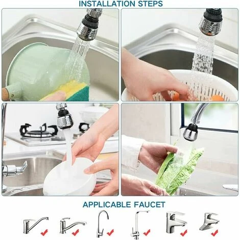 - 【ROTATION À 360 °】brise jet robinet peut tourner à 360 °et peut être facilement orienté vers n’importe quelle position de l’évier, il est donc très approprié pour les éviers ou les robinets avec des sorties d’eau élevées.
