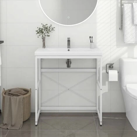Ce cadre pour lavabo de salle de bain s’intègre parfaitement Ă votre salle de bain Ă l’aspect propre et soignĂ©. FabriquĂ© en fer enduit de poudre, ce support de lavabo est rĂ©sistant aux intempĂ©ries et durable. Le cadre de lavabo permet d’accĂ©der facilement aux serviettes et aux paniers et crĂ©e un espace plus vaste qu’un rangement fermĂ©. Le cadre de la console de salle de bain est facile Ă nettoyer avec un chiffon humide.