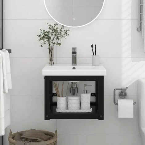 Avec ce cadre de lavabo mural pour salle de bain, vous pouvez crĂ©er un espace de rangement supplĂ©mentaire pour votre salle de bain avec un aspect propre et ordonnĂ©. FabriquĂ© en fer enduit de poudre, ce support de lavabo est rĂ©sistant aux intempĂ©ries et durable. Le cadre de lavabo permet d’accĂ©der facilement aux serviettes et aux paniers et crĂ©e un espace plus vaste qu’un rangement fermĂ©. Les meubles de salle de bain sont faciles Ă nettoyer avec un chiffon humide.