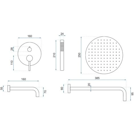 - Taille de la douche de tete: 25 x 25 cm