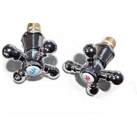 - Deux croisillons pour robinet en laiton chromé et deux têtes de clapet en céramique à l’intérieur et en laiton à l’extérieur.