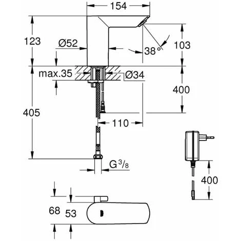 Mitigeur lavabo infrarouge avec mélange et limiteur de température préréglable