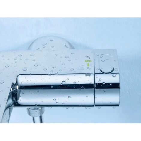 - GROHE EcoButton : Bouton économie intégré avec une butée éco pour douche