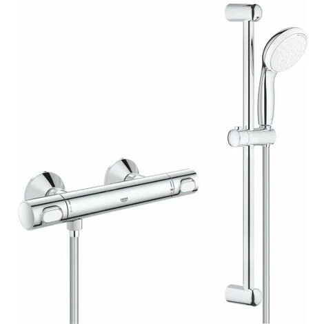 Caractéristiques du Set de Mitigeur de douche thermostatique + Douchette 2 jets + Barre de douche 600mm + Flexible 1750mm, Chrome, Grohe Precision Flow (34840000-TEMPESTA) :