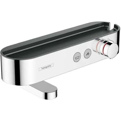 Le design moderne et l’ingénieuse fonctionnalité du thermostatique baignoire ShowerTablet Select 400 (montage apparent) de hansgrohe vous offre plus d’espace autour de la baignoire. Le mitigeur thermostatique de 40 cm de large avec ses angles arrondis offre une grande étagère pour les produits de soins. Le bec déverseur plat de la baignoire, situé sur la face inférieure, se rabat lorsqu’il n’est pas utilisé. Ce mitigeur thermostatique escamotable encastré est un véritable atout en matière d’économie d’espace. La douchette est toujours à portée de main grâce au support intégré sur le côté.