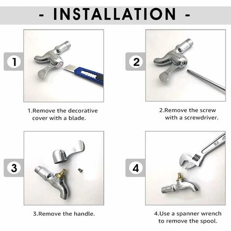 - [Étapes d’installation] Retirez d’abord le couvercle décoratif avec une lame, puis utilisez un tournevis cruciforme pour retirer les vis, puis retirez la poignée, utilisez une clé à molette pour retirer l’ancien noyau de valve, et enfin installez un nouveau noyau de valve de robinet pour restaurer la poignée de robinet.