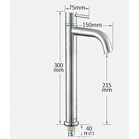 - Dimensions du robinet : hauteur totale : 30 cm ; hauteur du bec : 21,5 cm