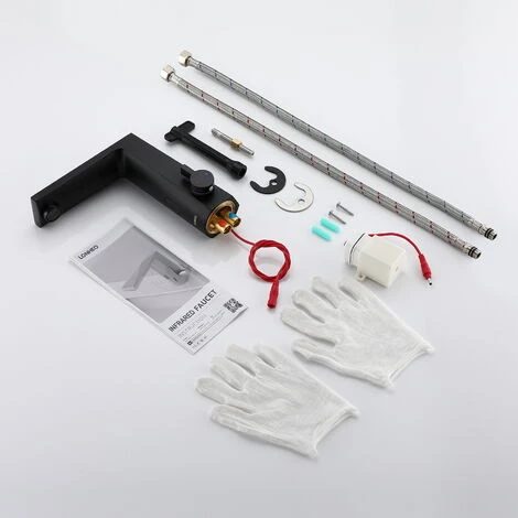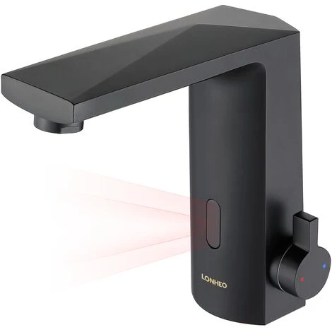 Lonheo Mitigeur Lavabo Infrarouge Electronique Eau Froide et Chaude Mitigeur Automatique Laiton Noir Robinet Automatique de Lavabo pour Salle de Bain