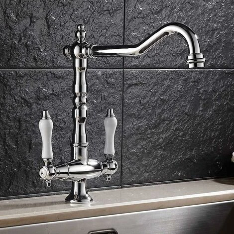 ✨【Conception de noyau de valve en céramique de haute qualité】: Valve en céramique anti-goutte quart de tour, moins d’usure, durable, longue durée de vie; corps en laiton massif, sûr et durable.✨ 【 Robinet de cuisine rotatif à 360 degrés 】 : le bec à arc élevé est conçu pour offrir plus d’espace pour les casseroles et poêles. La rotation à 360 degrés offre un excellent dégagement pour une variété d’activités d’évier. Large courbure et taille idéale pour mélanger les éviers de cuisine.✨【Robinet de lavabo de style vintage】 Le laiton antique est de haute qualité, anti-corrosion et anti-décoloration. C’est un bel ajout à votre cuisine.✨【FACILE À INSTALLER】–Il peut être facilement connecté à tous les principaux systèmes de pression d’eau chaude et froide avec un tuyau de raccordement standard de 3/8″.✨【Robinet mélangeur eau froide + eau chaude】 Double poignées en céramique : alimentation en eau chaude et froide. Alimentation en eau chaude et froide réglable, fonctionnement plus pratique, plus adapté à la cuisine ou à la salle de bain