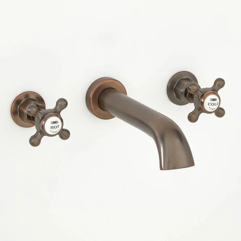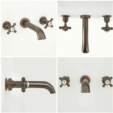 Le robinet est équipé de poignées en croisillon ergonomiques avec détails en céramique blanche pour permettre un contrôle séparé de l’eau chaude et froide.