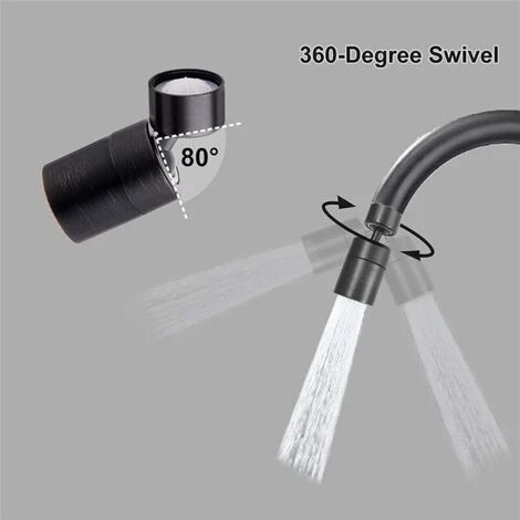 【ROTATION À 360°】Aérateur de cuisine avec rotule pivotante à 360° et angle de 80° à régler,l’eau peut facilement couvrir tout l’évier de cuisine pour laver et nettoyer les fournitures surdimensionnées dans l’évier, les grandes assiettes,la casserole,les casseroles,etc.