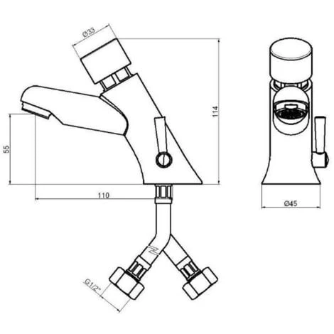 Mitigeur lavabo à fermeture automatique avec bouton poussoir et mitigeur par levier latéral |Idral MODERN 08212