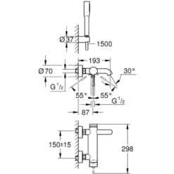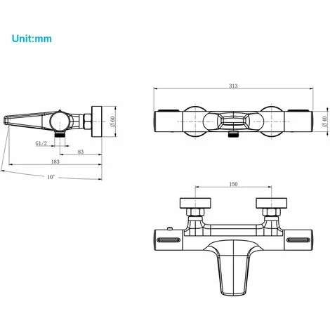 【Installation Facile】La distance du trou de montage mural est de 150 mm et l’interface du tuyau de douche est standard G1/2, adapté à la maison, à l’hôtel, etc.