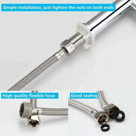 ⭐Installation facile. Le côté connecté à la vanne d’angle est G 3/8 et le côté connecté au corps du robinet est G 1/2. Veuillez faire attention aux spécifications de l’interface lors de l’installation.