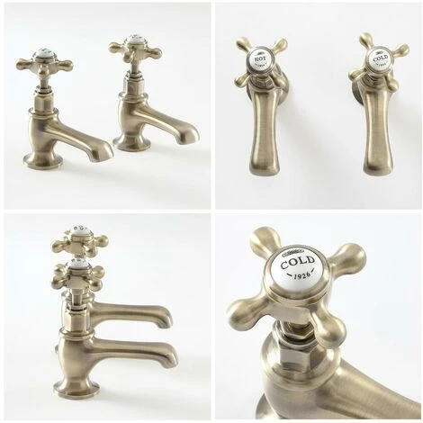 Mise en valeur par une finition or brossé qui résiste à l’humidité, elle présente un look rétro avec des poignées à croisillon et les détails en céramique blanche.