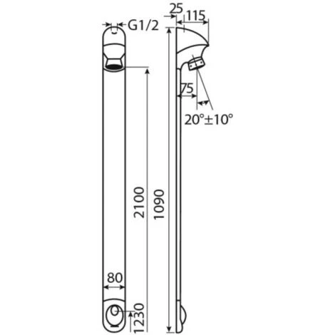 Panneau de douche temporisé pour alimentation en eau prémitigée.