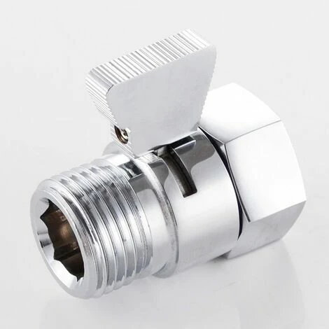 – Ce robinet d’arrêt en laiton plaqué chrome de haute qualité est installé entre le bras et le pommeau de douche pour contrôler le débit de l’eau.