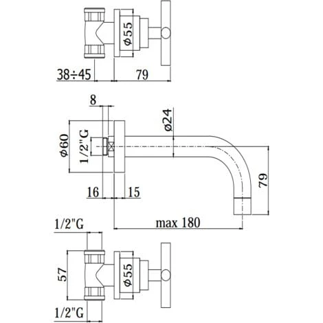 Mitigeur lavabo mural 3 trous |Paffoni Rubinetteria QUATTRO QTV003CR