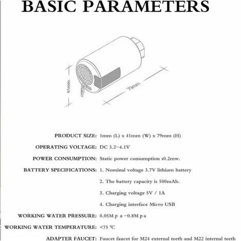 Durable : le robinet intelligent est alimenté par une batterie au lithium polymère rechargeable par USB, respectueuse de l’environnement et économe en énergie, avec une longue durée de vie de la batterie de plus de 9 mois et un voyant clignotant vous