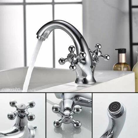 Deux poignées contrôlent le débit et la température de l’eau séparément.