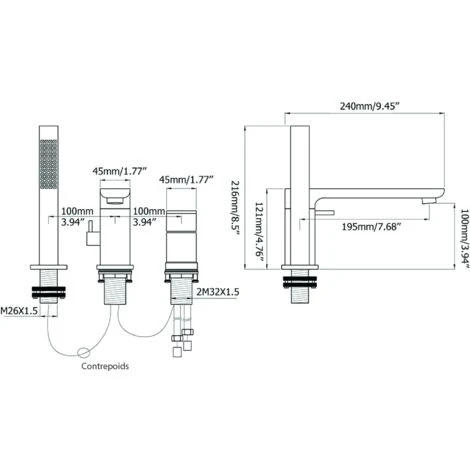 <li>Hauteur totale: 216 mm</li>