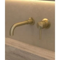 Mélangeur Lavabo Mural Rétro 3 Trous – Or Brossé – Commandes Croisillons – Elizabeth