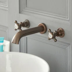 Mélangeur Lavabo Mural Rétro 3 Trous – Bronze Huilé – Commandes Croisillons – Elizabeth