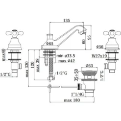 Mélangeur Lavabo 3 Trous Rétro Paffoni Iris IRV058CR Chromé – Iris – Vidage Automatique 11/4