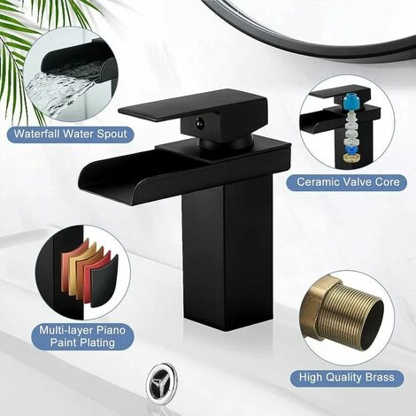 Le robinet de salle de bain cascade noir a un noyau de valve en céramique de précision qui peut ajuster avec précision le volume et la température de l =’eau.