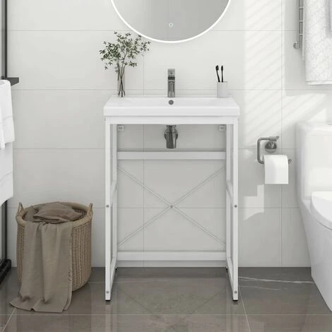 Ce cadre pour lavabo de salle de bain s’intègre parfaitement à votre salle de bain à l’aspect propre et soigné. Fabriqué en fer enduit de poudre, ce support de lavabo est résistant aux intempéries et durable. Le cadre de lavabo permet d’accéder facilement aux serviettes et aux paniers et crée un espace plus vaste qu’un rangement fermé. Le cadre de la console de salle de bain est facile à nettoyer avec un chiffon humide.