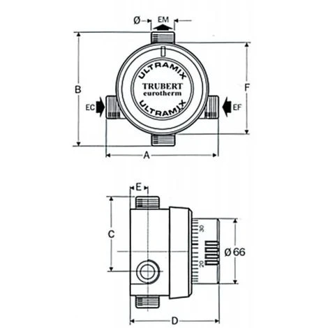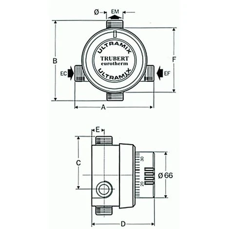 Température modifiable par les services techniquesSécurité anti-brulure immédiateCorps en laiton et coque en ABS blanc.